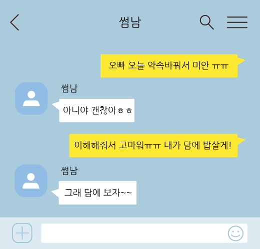 2. 다음 남자의 카톡의 의미로 가장 알맞은 것은?